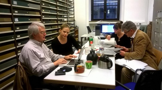 Projektbesprechung, 2015, mit Marc Masurovsky, Meike Hopp, Sophie Kriegenhofer und Christian Fuhrmeister (von links nach rechts)