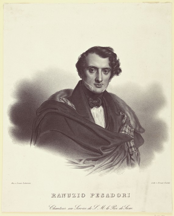 Lithographie von Ernst Oertel, Porträt des Tenors Ranunzio Pesadori, 1.H. 19. Jh.